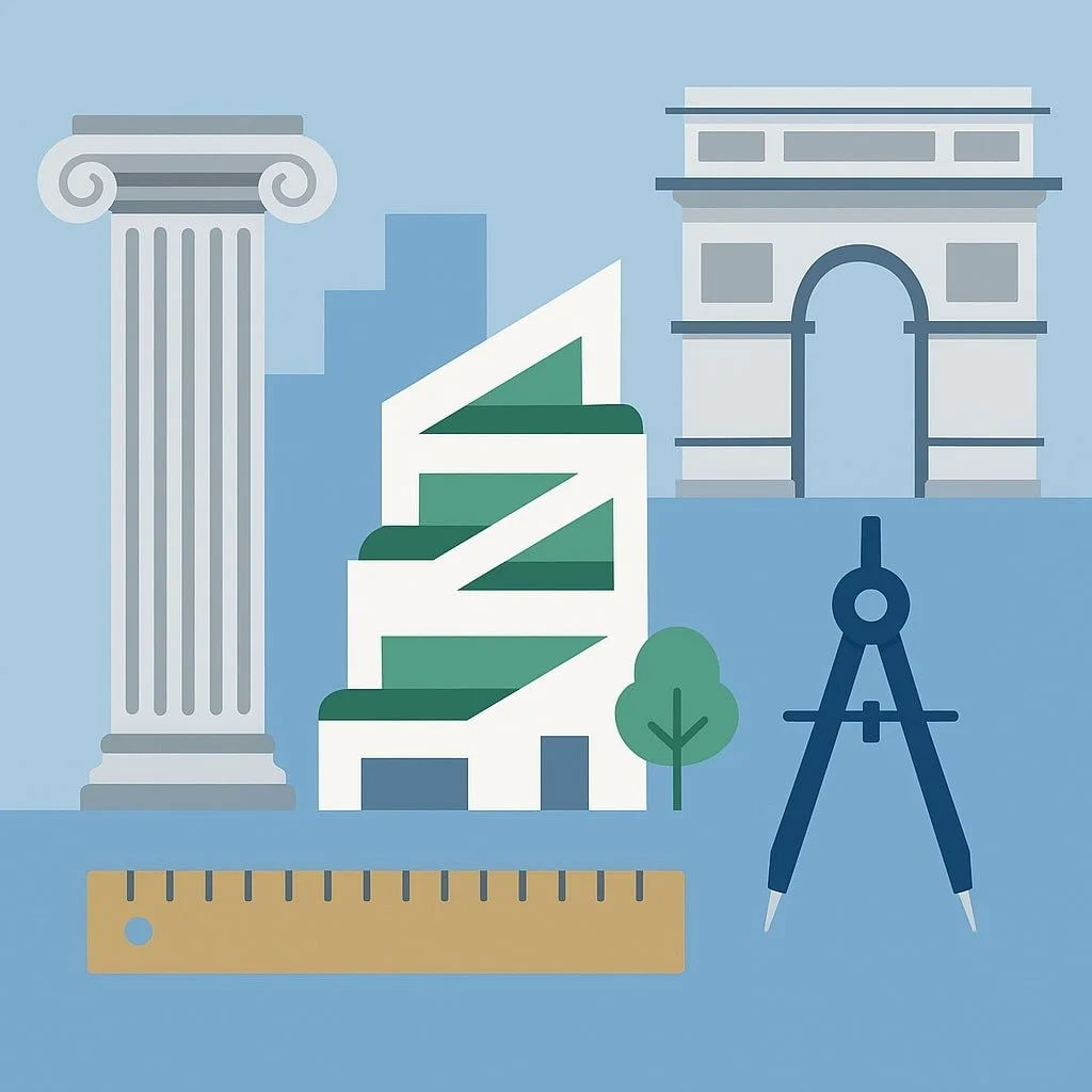 Draw on specific examples of buildings, architects, or movements (e.g. Le Corbusier, Zaha Hadid, Foster + Partners, vernacular design).